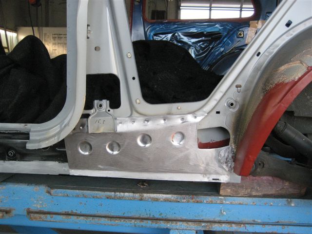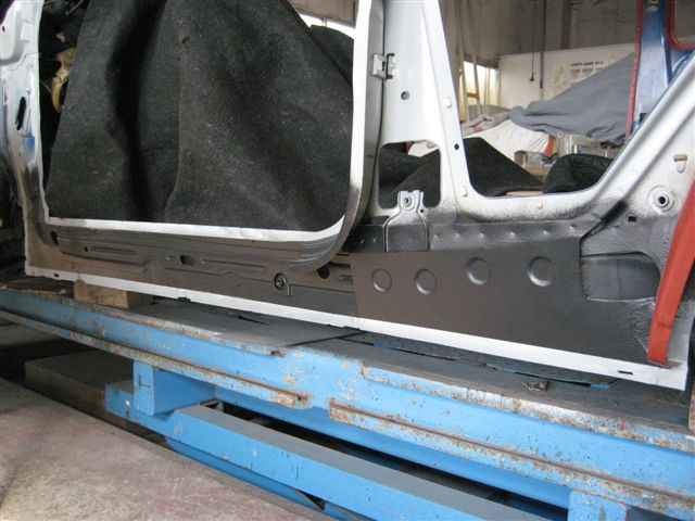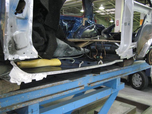 錆びていたフロアパネルは補修され、右と同じくジャッキポイントを補強し、
